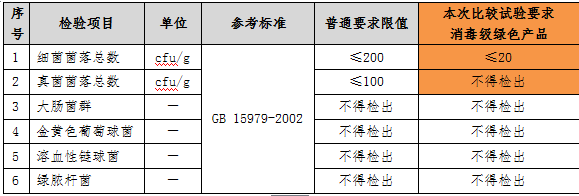 如果衛(wèi)生巾中的微生物指標(biāo)存在問題,會增加女性月經(jīng)期婦科炎癥的風(fēng)險,危害人體健康,我國《一次性使用衛(wèi)生用品衛(wèi)生標(biāo)準(zhǔn)》(GB15979-2002)中對致病微生物有嚴(yán)格要求。本次比較試驗參照《綠色產(chǎn)品評價 紙和紙制品》(GB/T35613-2017)中微生物限值最嚴(yán)格的消毒級要求(見下表)考核樣品,結(jié)果顯示,35款樣品均可以達(dá)到消毒等級的要求。
