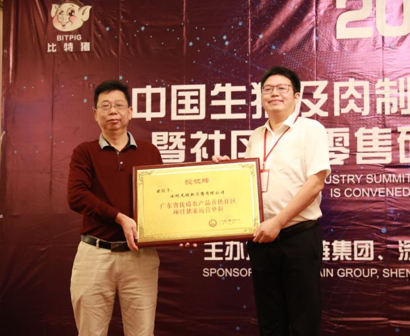 龍鏈集團(tuán)董事局主席、川豬集團(tuán)董事長(zhǎng)、深圳龍鏈新零售有限公司董事長(zhǎng)夏可,上臺(tái)接受了這項(xiàng)全廣東省獨(dú)家的授權(quán)牌,并發(fā)表感言:這既是廣東省委、省政府對(duì)深圳龍鏈新零售有限公司以區(qū)塊鏈、人工智能、物聯(lián)網(wǎng)等領(lǐng)域的高新科技,打造形成了生豬及肉制品等高品質(zhì)“菜籃子工程”系列產(chǎn)品的規(guī)模化、專業(yè)化產(chǎn)供銷及商業(yè)平臺(tái)服務(wù)“一條龍”的肯定,也是一種鞭策——鞭策龍鏈人將自創(chuàng)的“比特豬”品牌穩(wěn)固為中國(guó)高端健康食品結(jié)合社區(qū)新零售領(lǐng)域的第一品牌,并不斷推動(dòng)市民能夠以更便捷的方式與更良好的消費(fèi)體驗(yàn),獲得高品質(zhì)的放心食品。