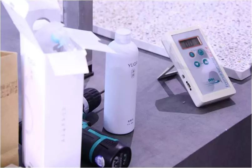 還為各展區(qū)贈送了尤佳環(huán)境自主研制的YUGA凈源除醛劑,各參展單位對自己展區(qū)內(nèi)的展柜進(jìn)行了除醛處理。