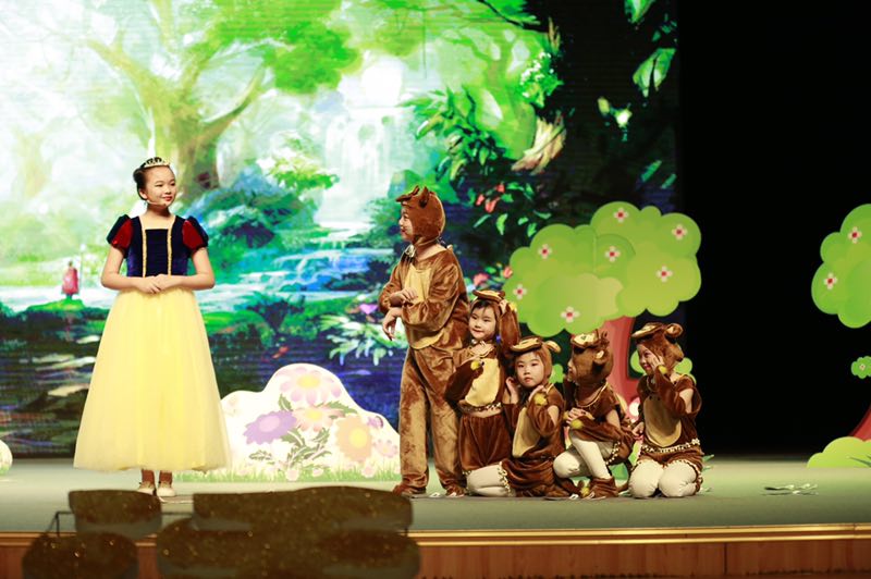 現(xiàn)場(chǎng)表演精彩紛呈,內(nèi)容積極向上,形式豐富多彩,表演生動(dòng)逼真,充分展示出選手們奮發(fā)向上的精神風(fēng)貌,同時(shí)也展現(xiàn)了選手們的外語(yǔ)實(shí)際運(yùn)用能力和自主創(chuàng)新精神。《三打白骨精》、《睡美人》、《冰河世紀(jì)》、《獅子王》、《皇帝的新裝》、《白雪公主和七個(gè)小矮人》、《小紅帽》、《馬良的神筆》……一個(gè)個(gè)經(jīng)典的童話故事,惟妙惟肖的表演,生動(dòng)的詮釋著故事里的每一個(gè)角色,把觀眾帶入一個(gè)個(gè)美麗的童話世界。