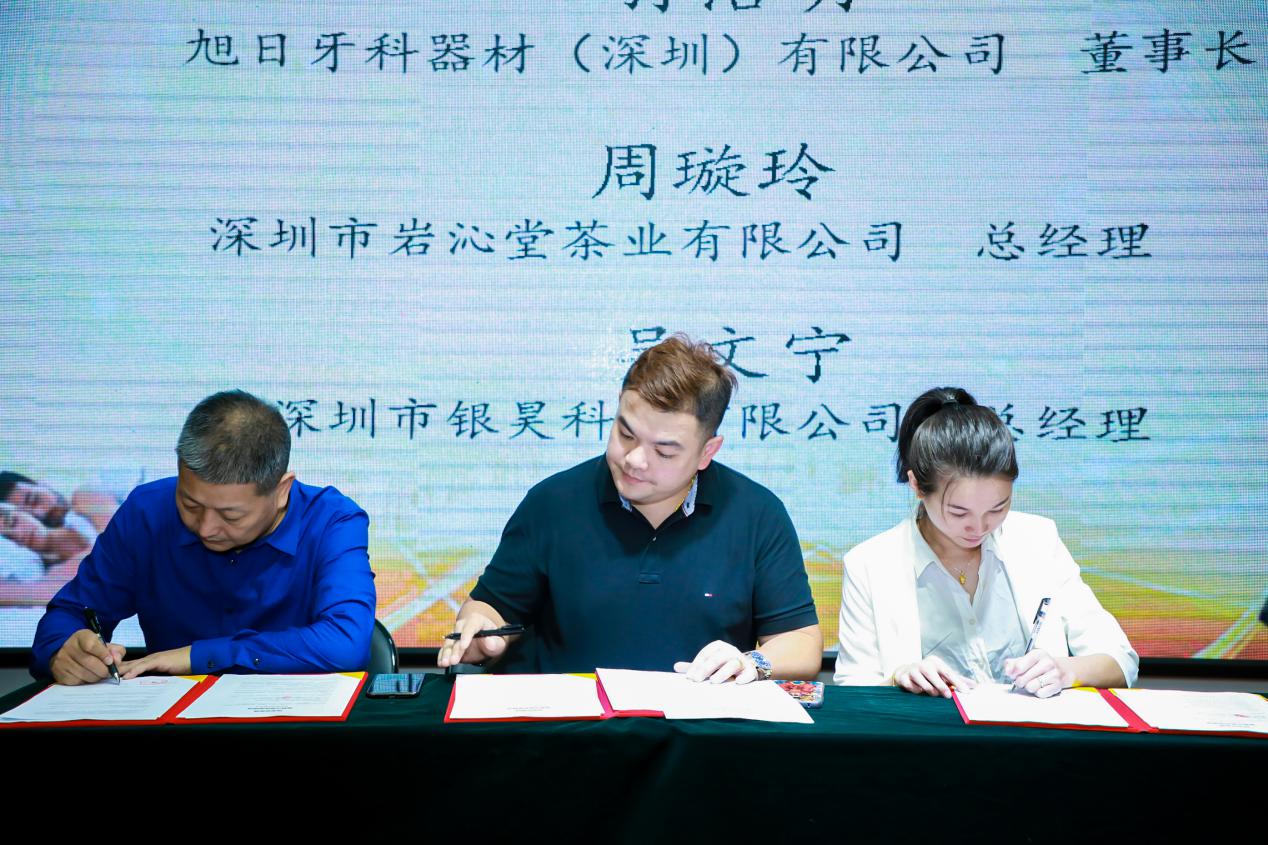 活動現(xiàn)場,深圳市銀昊科技有限公司總經(jīng)理吳文寧、旭日牙科器材(深圳)有限公司董事長孫浩明、深圳市巖沁堂茶業(yè)有限公司總經(jīng)理周璇玲、深圳書畫藝術學院財務總監(jiān)孫玲、中國美術教育研究會藝術顧問張成珍教授等與中科睿雅沉香簽訂合作伙伴協(xié)議,共同開拓沉香精油市場。