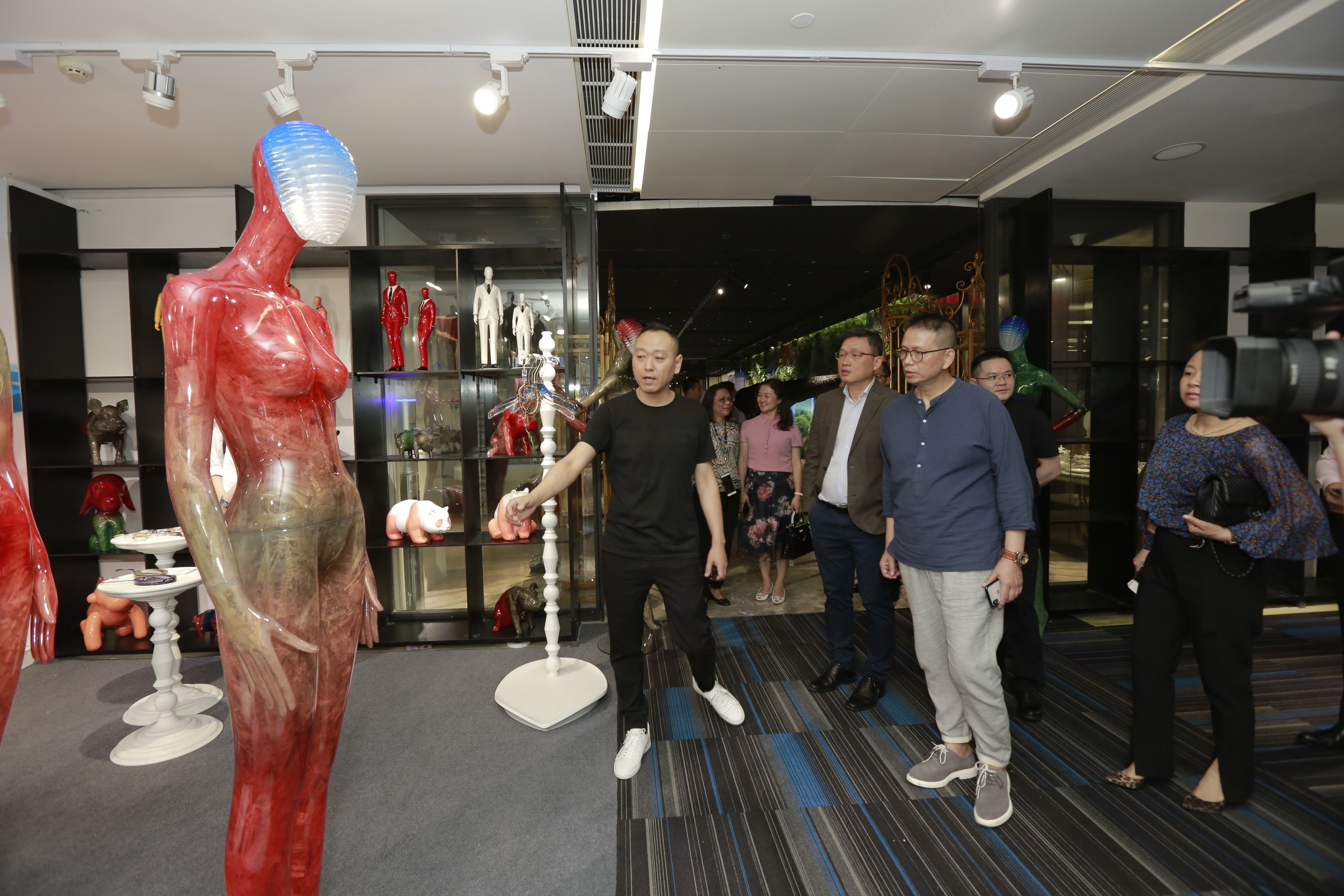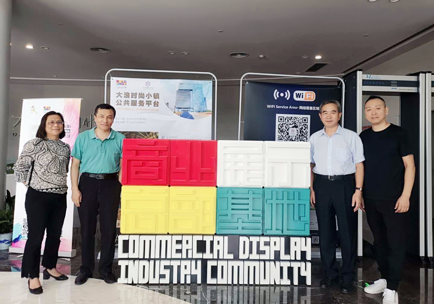 大浪時尚小鎮(zhèn)黨委第一書記劉繼琴、深圳市社會組織管理局副局長孫景明、大浪時尚小鎮(zhèn)建設(shè)管理中心主任曹宇昕、大浪時尚小鎮(zhèn)黨委專職副書記曾鳳,市政協(xié)委員、原市民政局處長駱冰,卡爾丹頓服飾股份有限公司品牌總監(jiān)胡屹,市展示道具行業(yè)協(xié)會創(chuàng)會會長駱詩學(xué),商業(yè)展示技術(shù)研究院、展示道具行業(yè)協(xié)會秘書長蘇建東,共同為商業(yè)展示總部基地揭牌。