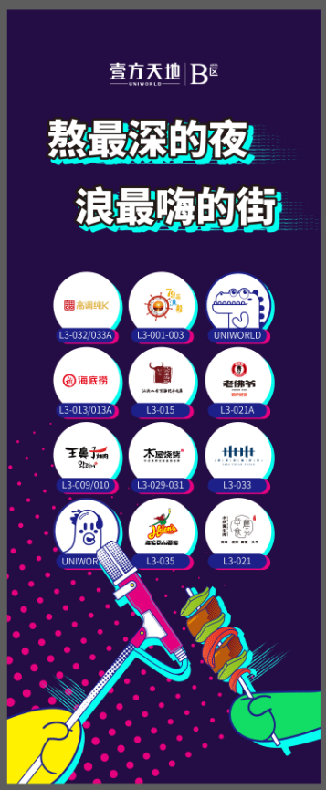購物中心是城市的精華,也是生活方式的容器。B區(qū)洞察了當(dāng)代年輕人的這一消費(fèi)習(xí)慣,發(fā)力“夜經(jīng)濟(jì)”,精心打造夜市街區(qū)——嗨FUN宵夜街。
