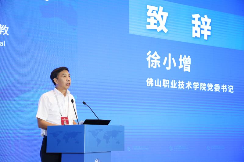 佛山職業(yè)技術(shù)學(xué)院黨委書記徐小增代表主辦單位致辭,他表示佛山是粵港澳大灣區(qū)重要的節(jié)點(diǎn)城市,是中國重要的制造業(yè)基地,對于發(fā)展職業(yè)教育具有得天獨(dú)厚的土壤和優(yōu)勢,在省教育廳和佛山市委市政府的高度重視和大力支持下,佛山職業(yè)技術(shù)學(xué)院近年來實(shí)現(xiàn)了跨越式發(fā)展和進(jìn)步。