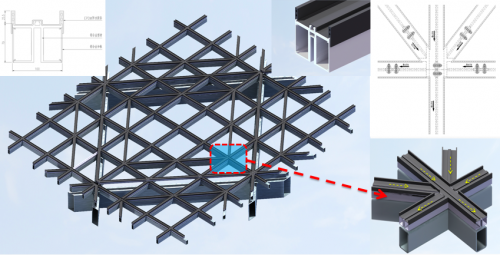 由于每一個(gè)小“盒子”的顏色都是獨(dú)一無(wú)二的,需要在生產(chǎn)階段為每一塊零件編號(hào),并在安裝時(shí)按編號(hào)一塊一塊進(jìn)行組合。更讓項(xiàng)目部犯難的是,在根據(jù)原有方案進(jìn)行樣板安裝時(shí),“盒子”全部下垂,原因是菱形盒子突出內(nèi)層幕墻1米,難以固定支撐。后經(jīng)反復(fù)研究試驗(yàn),決定在裝盒子前,在墻上做一個(gè)外觀似蜘蛛網(wǎng)的控制體系,為每個(gè)菱形盒子準(zhǔn)確定位,將安裝精度控制在毫米級(jí)。