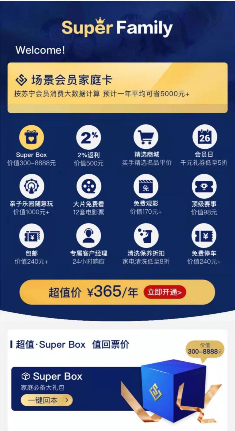 “在設(shè)計(jì)這款會(huì)員產(chǎn)品時(shí),我們希望能觸達(dá)每一位家庭成員?!碧K寧相關(guān)負(fù)責(zé)人解釋說:“比如媽媽,她用的更多的可能是購物,那么家庭會(huì)員有購物2%的返利;爸爸可能喜歡體育,我們有頂級(jí)賽事的觀賽劵贈(zèng)送;對(duì)于孩子,我們提供了免費(fèi)游玩樂園、免費(fèi)看電影、免費(fèi)停車等福利,讓全家人盡情享受親子時(shí)光?!?/p>