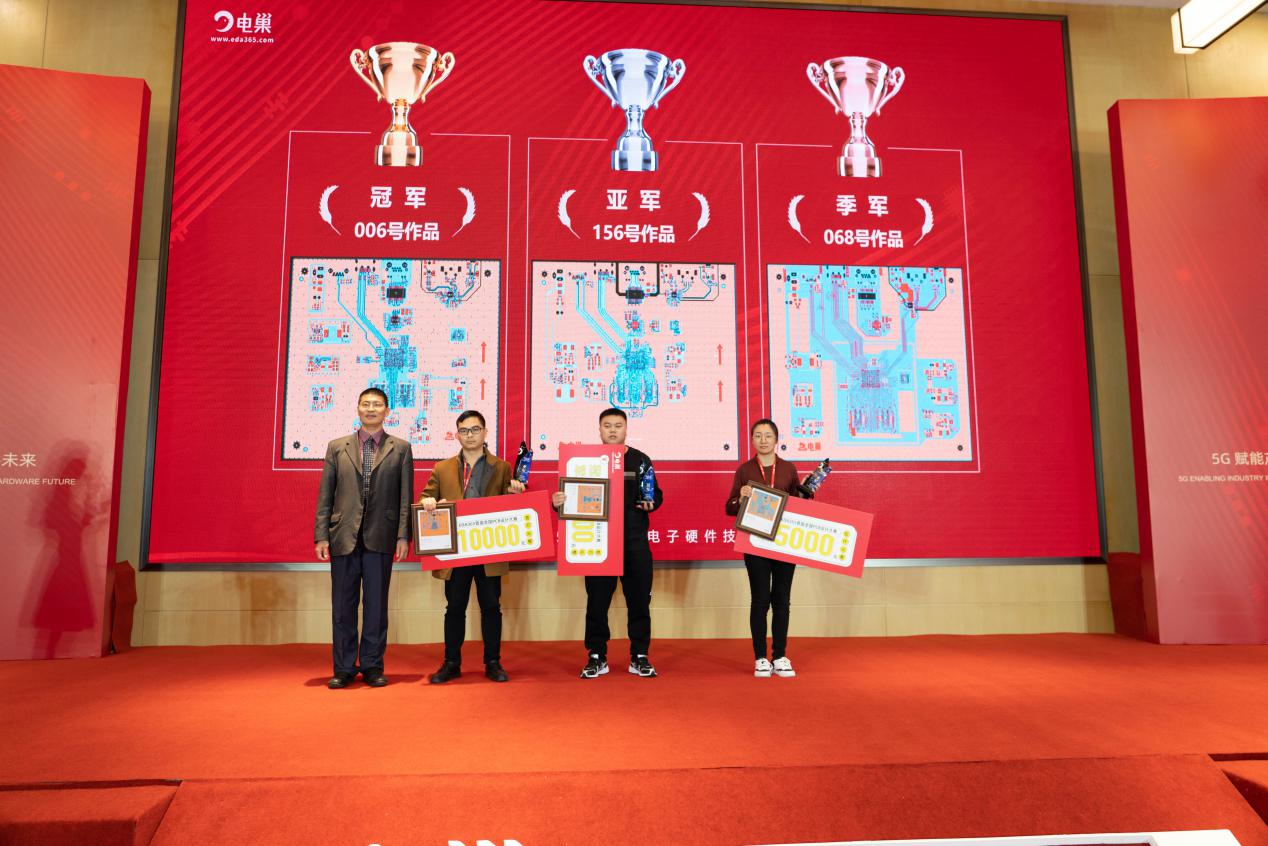 除此之外,EDA365還在現(xiàn)場為首屆全國PCB設(shè)計(jì)大賽的冠亞季軍進(jìn)行了現(xiàn)場頒獎(jiǎng),同時(shí)獲得”人氣講師“、”人氣版主“、”人氣網(wǎng)友“稱號(hào)的諸位大咖和活躍網(wǎng)友也紛紛趕赴現(xiàn)場領(lǐng)獎(jiǎng),更有遠(yuǎn)在千里之外的網(wǎng)友送上祝福視頻。