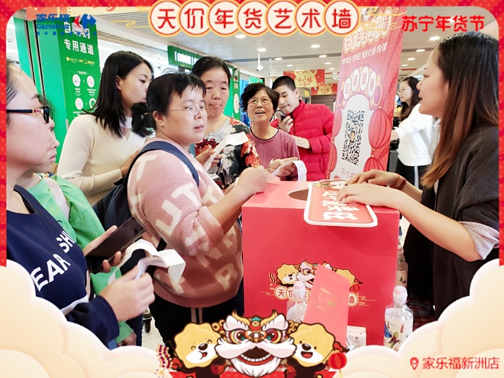 天價年貨藝術墻,藝術年貨送不停 ! 1月17日 至 1月 19 日 , 家樂福華南區(qū)廣州員村店、珠海吉大店、福州寶龍店 、廈門中華城店及 深圳新洲店 (活動時間為1.16-1.18) 活動繼續(xù) 。 禮品數量有限,每天送完即止 !蘇寧家樂福 實力助你過年味滿滿的春節(jié) ,邀請您 來把年貨驚喜領回家 !