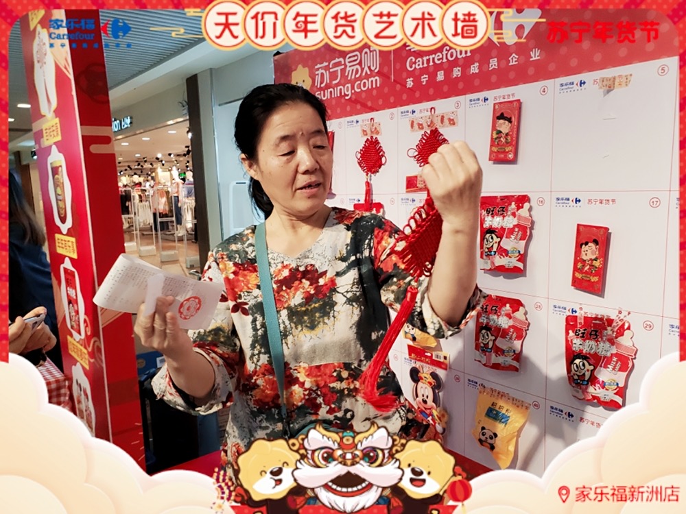 雖說活動創(chuàng)意來源于"天價香蕉",但家樂福華南區(qū) 送出 的福利可是如假包換。顧客們憑購物小票即可參與抽獎,德芙巧克力禮盒、丹麥藍罐曲奇、樂事新春全家桶、錦鯉年糕、對聯(lián)紅包福袋、旺仔牛奶糖、中國結……年貨好物一樣接一樣! 而且每樣產品都包含著新年的美好祝愿。