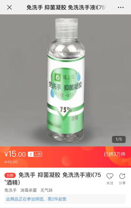 春節(jié)假期進(jìn)入尾聲后,有少部分工廠陸續(xù)復(fù)工。其中有一家來著于蘇寧“拼工廠”的河北企業(yè)與蘇寧拼購?fù)献?,開足馬力,全力生產(chǎn)酒精含量為75%的免洗手抑菌凝膠。據(jù)蘇寧拼購相關(guān)負(fù)責(zé)人介紹:“蘇寧將根據(jù)最近疫情消費數(shù)據(jù)指導(dǎo)該‘拼工廠’生產(chǎn),預(yù)估未來幾天銷量,讓工廠效率達(dá)到最大。”據(jù)悉,該款“75%免洗手抑菌凝膠”商品僅2月2日上半日便拼出3萬單。河北“拼工廠”負(fù)責(zé)人表示,目前產(chǎn)能能達(dá)到日均20萬瓶。