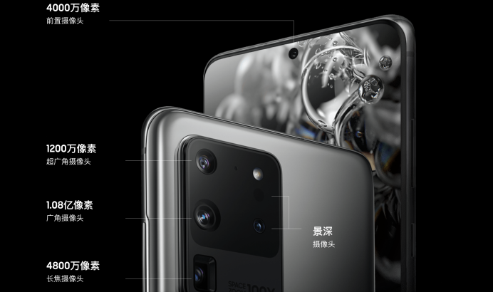 此次,三星為S20系列創(chuàng)造了全新的影像系統(tǒng),其中,S20 Ultra采用了一高達(dá)1.08億像素的超高分辨率主攝像頭,混合變焦可以達(dá)到10倍,超高分辨率變焦達(dá)到100倍,并且采用了1/1.33英寸的圖像傳感器,此外它還前置了一顆4000萬像素的攝像頭。