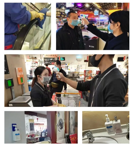 由于網(wǎng)上“配送到家”服務(wù)訂單量的劇增,在保障網(wǎng)上訂單及員工的安全性方面,蘇寧家樂(lè)福也做了十足防范措施。首先,蘇寧家樂(lè)福要求所有工作人員一律佩戴口罩,并通過(guò)體溫檢測(cè)才能上崗。其次,門(mén)店每天至少會(huì)在3個(gè)時(shí)間段使用84消毒液對(duì)賣(mài)場(chǎng)所有公共區(qū)域以及辦公區(qū)、員工餐廳等區(qū)域進(jìn)行清潔衛(wèi)生消毒,并對(duì)手提籃、購(gòu)物車(chē)、電梯扶手、垂直梯按鈕每隔2小時(shí)進(jìn)行清潔消毒;再次,賣(mài)場(chǎng)的熟食產(chǎn)品加蓋加罩售賣(mài),安排專(zhuān)人看管,禁止顧客直接用手觸摸,停止提供“試吃”及“餐飲堂食”服務(wù)。所有快遞、外賣(mài)小哥必須佩戴口燥,并通過(guò)體溫檢測(cè),在門(mén)店入口用消毒凝膠清潔后方可提貨。