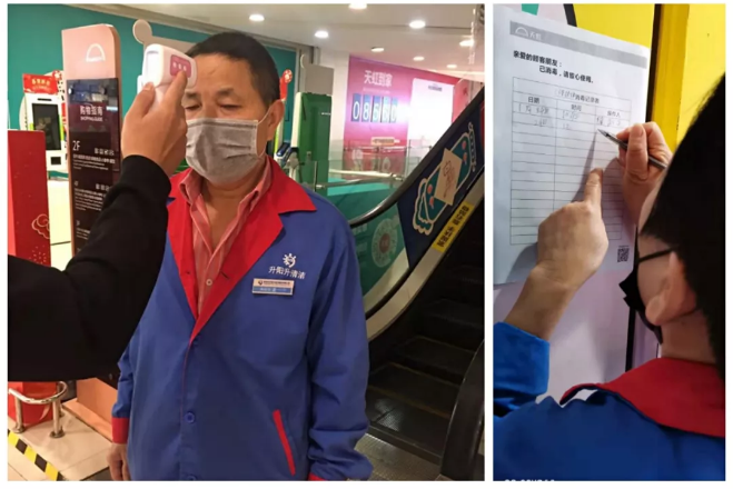 而對(duì)于員工防控管理,天虹也第一時(shí)間擬定了《關(guān)于天虹同事自我防護(hù)預(yù)防新型冠狀病毒感染的溫馨提示》、《新型冠狀病毒預(yù)防專(zhuān)項(xiàng)預(yù)案》、《員工出行信息填報(bào)表》等制度及規(guī)章,加強(qiáng)對(duì)員工的自我保護(hù)和防范培訓(xùn),嚴(yán)格要求員工必須戴口罩上班,同時(shí),在員工通道必須測(cè)量體溫正常方可進(jìn)場(chǎng)。