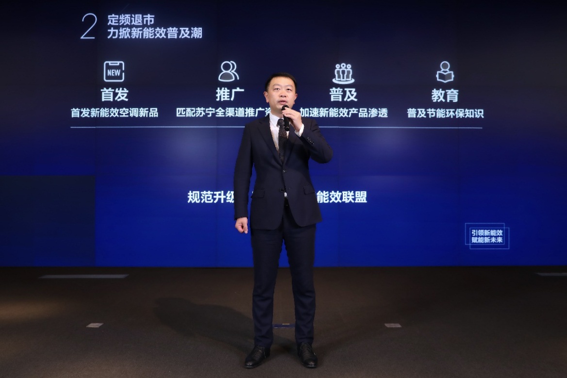 國家標(biāo)準(zhǔn)推動(dòng)新能效空調(diào)進(jìn)入普及快車道的同時(shí),蘇寧作為家電第一渠道,也在積極通過綠色消費(fèi)讓利活動(dòng),加大新能效空調(diào)產(chǎn)品的推廣。蘇寧家電集團(tuán)副總裁徐仲介紹說,去年8月,蘇寧就啟動(dòng)了“定頻退市”項(xiàng)目。今年將在此基礎(chǔ)上多重加碼,一方面聯(lián)合各家空調(diào)企業(yè),成立“新一級(jí)能效聯(lián)盟”,加速新能效空調(diào)的研發(fā)與推廣;另一方面持續(xù)開展“空調(diào)節(jié)能風(fēng)暴活動(dòng)”,涵蓋包括老能效清倉、新能效補(bǔ)貼、以舊換新和24期免息在內(nèi)的四重補(bǔ)貼,從而加速新舊能效產(chǎn)品的切換,降低新能效空調(diào)的消費(fèi)門檻。