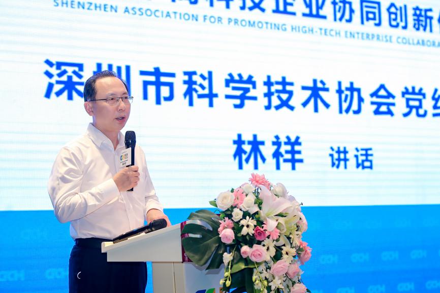 深圳市科學(xué)技術(shù)協(xié)會(huì)黨組書記、副主席林祥代表深圳市科協(xié)對高促會(huì)的成立表示熱烈的祝賀,向?yàn)樯钲谑邪l(fā)展作出貢獻(xiàn)的廣大科技工作者致以崇高的敬意,深圳市科協(xié)將圍繞中央、省委、市委的決策部署,在中國科協(xié)、省科協(xié)的指導(dǎo)下,按照雙區(qū)建設(shè)的要求,積極探索科技與經(jīng)濟(jì)相融合的新機(jī)制,形成大力促進(jìn)科技成果轉(zhuǎn)化的熱潮。希望高促會(huì)可以精準(zhǔn)發(fā)力,促進(jìn)深圳市科學(xué)普及與科技創(chuàng)新比翼齊飛,努力創(chuàng)建社會(huì)主義現(xiàn)代化強(qiáng)國的城市范例。