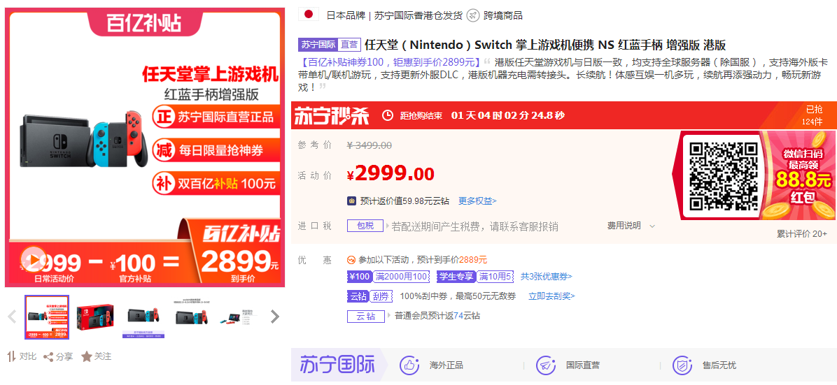 數(shù)據(jù)顯示,6月29日-7月5日,蘇寧國際口紅銷量增長明顯,最受歡迎的口紅色號為mac小辣椒磚紅色。為了給高考生鼓勵,家長們也是操碎了心。數(shù)據(jù)顯示,6月29日-7月5日,蘇寧國際switch游戲機也銷售也創(chuàng)新高。目前,蘇寧國際該產(chǎn)品正參與百億補貼,優(yōu)惠力度與618期間差不多,不少家長選擇購買這款產(chǎn)品作為孩子們苦讀的獎勵。
