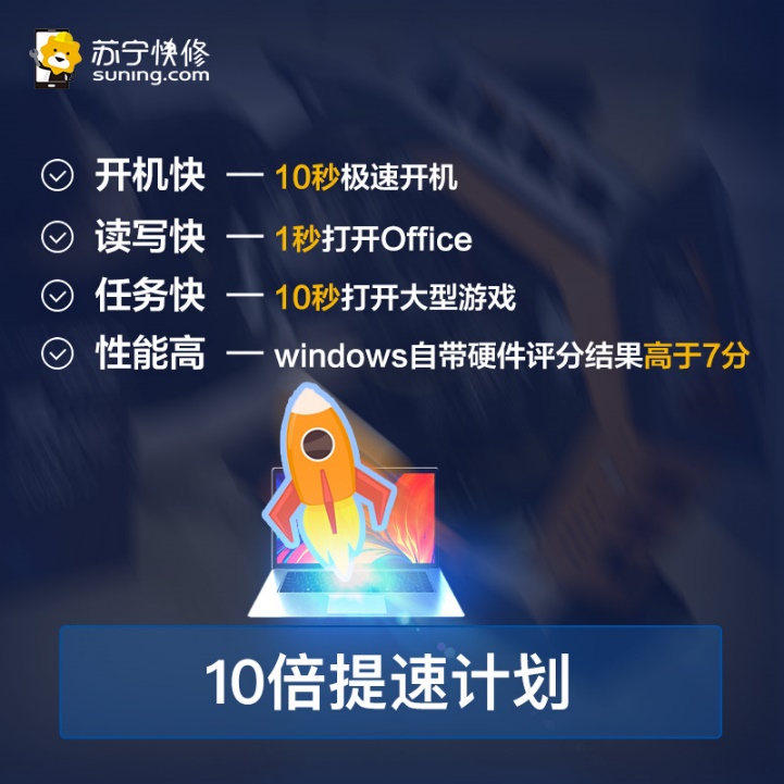 據(jù)了解,蘇寧快修電腦十倍提速服務共有兩種提速方案供用戶選擇。其一,機械硬盤電腦提速計劃,通過在機械硬盤電腦上加裝固態(tài)硬盤,將固態(tài)硬盤作為電腦系統(tǒng)運行盤,原機械硬盤作為電腦資料存儲盤;其二,固態(tài)硬盤電腦置換擴容計劃,將原有小容量固態(tài)硬盤替換為大容量固態(tài)硬盤,從而使電腦運行速度提升3-10倍。