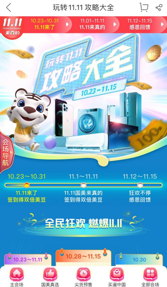 10月28日至11月25日,國美九九會員上線,只需九塊九,羊毛就能薅到手;10月30日,“買遍中國”直播杭州站開播,西湖美食便宜還好吃;11月1日-11月3日大促高峰啟動,各種紅包雨抽獎嗨不停;11月4日至11月6日,萬人直播,空前視覺盛宴奉上;11月7日至11月10日,買遍歐洲直播活動,全球好物任你挑;后續(xù)還有返場福利等你來拿!