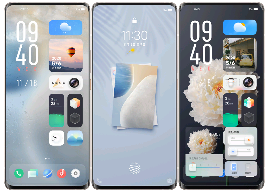 大家往往認為,手里的屏幕里只有冰冷的功能和信息,但OriginOS把生活的溫度和感知帶進了屏幕?!霸耙暣啊背蔀榱耸謾C和現實世界之間搭的橋梁,在不影響主屏操作的情況下,用戶可以感受到與外界同步的天氣和環(huán)境變化。舉個生動的例子,在日出到日落的16個場景內,用戶可以清晰感知到不同時間的環(huán)境亮度、光線和色溫。不僅于此,用戶也可以設置自己每天的目標步數,每走一步,花朵就多綻放一步。OriginOS所致力于的,便是將日常生活中的無意識行為,轉變成為了用戶可以感知的美感。
