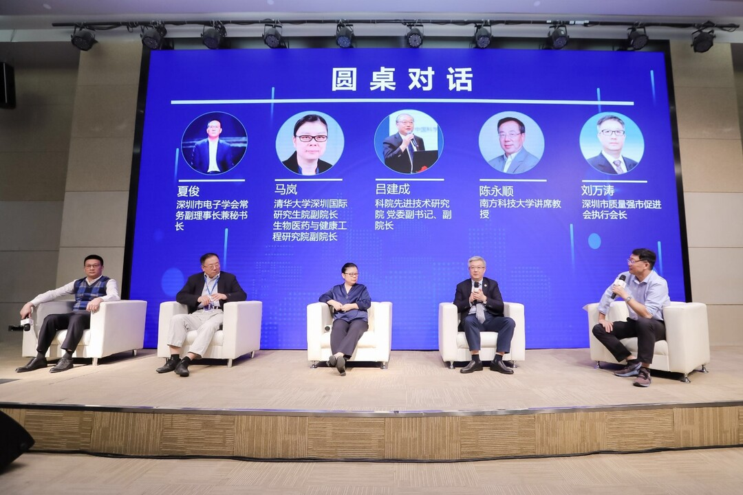 在圓桌對(duì)話環(huán)節(jié),深圳市電子學(xué)會(huì)常務(wù)副理事長(zhǎng)兼秘書長(zhǎng)夏俊、深圳市質(zhì)量強(qiáng)市促進(jìn)會(huì)執(zhí)行會(huì)長(zhǎng)劉萬(wàn)濤等嘉賓以“學(xué)科發(fā)展、科技進(jìn)步、人才成長(zhǎng)和科學(xué)普及等方面的作用”為主題展開(kāi)交流與討論。