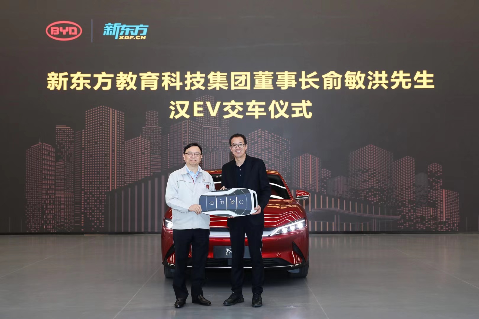 近日,新東方教育科技集團(tuán)董事長俞敏洪來訪比亞迪深圳總部。期間,比亞迪集團(tuán)董事長兼總裁王傳福向俞敏洪闡述了比亞迪的發(fā)展歷程以及布局規(guī)劃,并向他介紹了比亞迪全球超安全智能新能源旗艦轎車——漢,俞敏洪看到漢的外觀之后連連稱贊,并試駕了漢 EV。