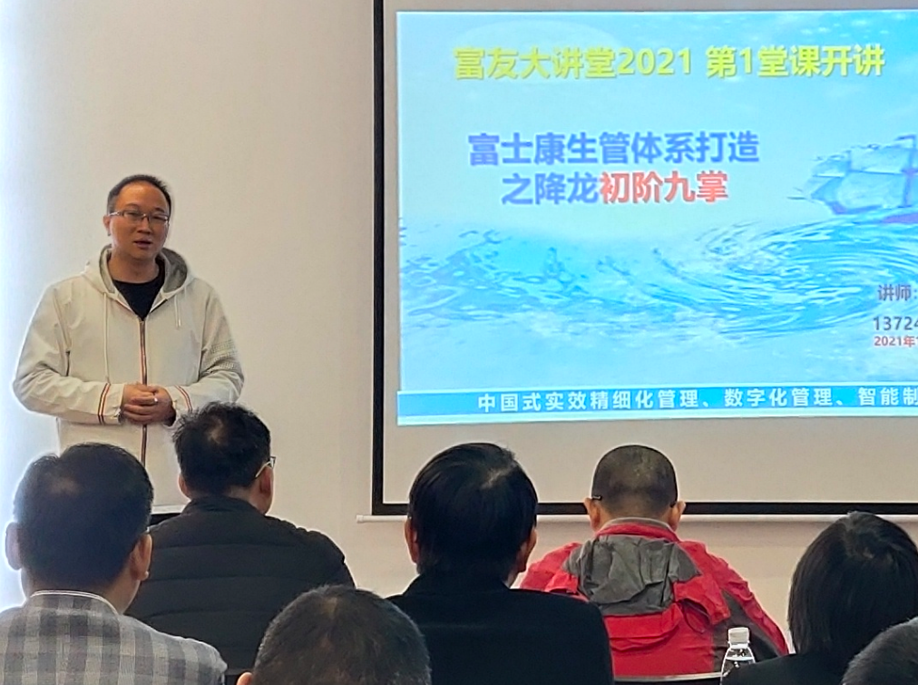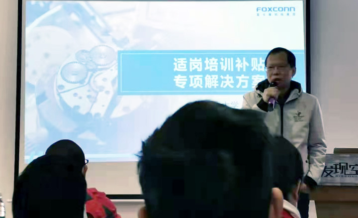 富士康大學(xué)資深專理李治佑帶來了適崗培訓(xùn)補(bǔ)補(bǔ)貼的專項(xiàng)解決方案,李專理表示,富士康大學(xué)會(huì)開放更多的課程資源,賦能富友制造企業(yè),促進(jìn)灣區(qū)制造企業(yè)筑基升級(jí)。