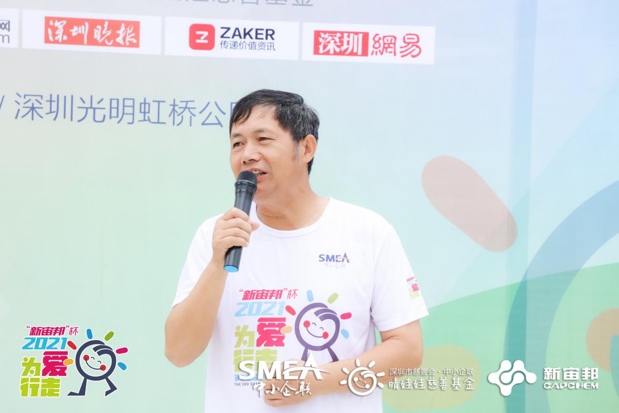 深圳中小企聯(lián)會(huì)長(zhǎng)、深圳市杰科電子有限公司董事長(zhǎng)黃榮添為開(kāi)幕式致辭。他表示:“感謝新宙邦對(duì)本次慈善公益徒步活動(dòng)做出的貢獻(xiàn),以及今天參加此次活動(dòng)的愛(ài)心企業(yè)家、愛(ài)心人士們的大力支持,我代表深圳中小企聯(lián)感謝大家的參與,今后也希望通過(guò)各類活動(dòng)讓更多愛(ài)心人士關(guān)注我們“晴娃娃”,給更多的孩子送去關(guān)愛(ài),能讓他們綻放開(kāi)心的笑容。”
