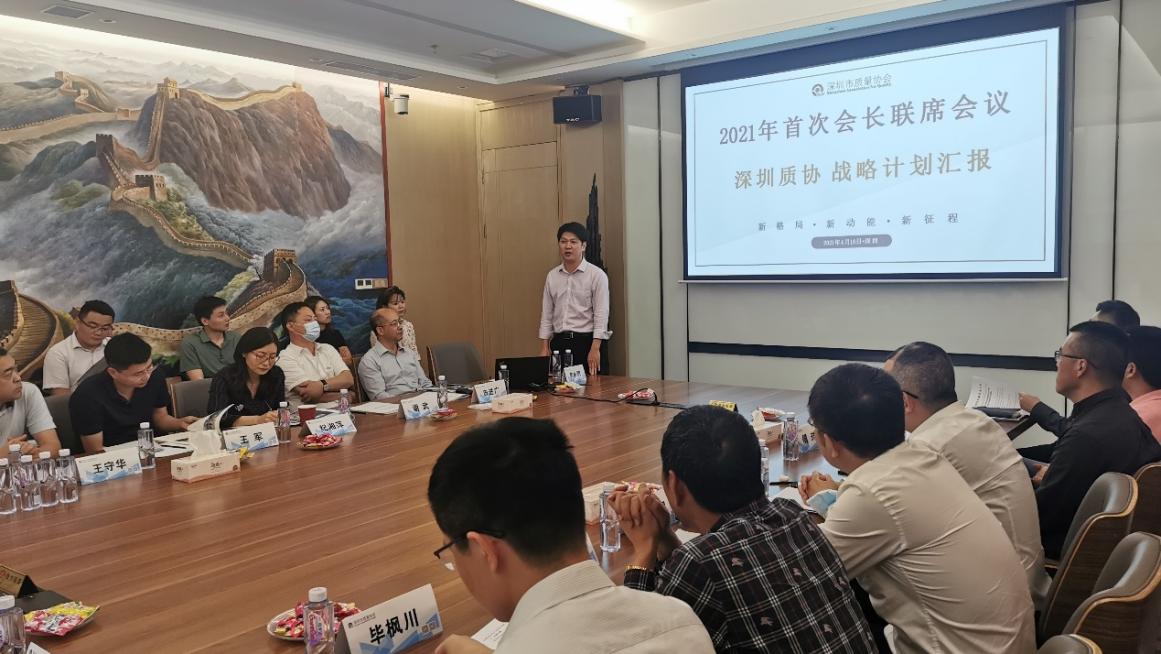 見圳客戶端·深圳新聞網(wǎng)2021年4月22日訊 近日,深圳市質(zhì)量協(xié)會2021年首次會長聯(lián)席會議在市質(zhì)協(xié)副會長單位銀廣廈集團(tuán)有限公司成功舉辦。深圳市人民政府原副市長陳彪,原廣東省政府參事、原深圳出入境檢驗(yàn)檢疫局局長、市決咨委——市先行示范區(qū)專家劉勝利,深圳市質(zhì)量協(xié)會會長、深圳航盛電子有限公司董事長楊洪以及各在深副會長出席了本次會議。