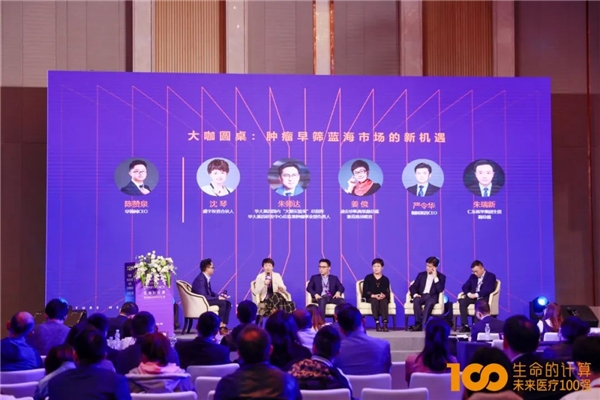 華大基因腫瘤事業(yè)部總經(jīng)理朱師達(dá)參與“腫瘤早篩藍(lán)海市場(chǎng)的新機(jī)遇”圓桌討論(左三)