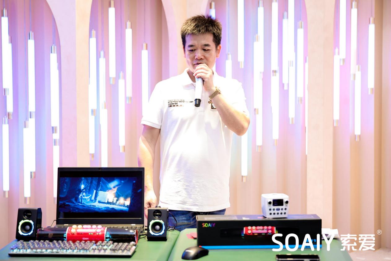 會(huì)上,索愛(ài)董事長(zhǎng)劉建佳發(fā)表《聲光電,就是玩兒》的戰(zhàn)略演講——“聲”是索愛(ài)25年的聲效研發(fā),“光”是構(gòu)建震撼視覺(jué)的RGB光效,“電”則是緊繞玩家體驗(yàn)的電競(jìng)基因;聲光電,三者有機(jī)耦合,以創(chuàng)新科技與玩家洞察的完美結(jié)合,為大眾電競(jìng)玩家提供更具電競(jìng)氛圍、更好電競(jìng)體驗(yàn)、更強(qiáng)電競(jìng)聲效的極致電競(jìng)音頻體驗(yàn)!“就是玩兒”,是索愛(ài)年輕新潮的品牌態(tài)度,更是索愛(ài)想讓大眾玩家更好地去“玩”的愿景。
