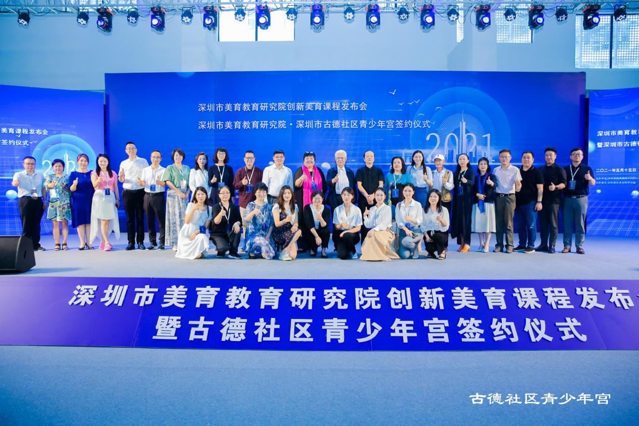 深圳市美育教育研究院創(chuàng)新美育課程發(fā)布會暨古德社區(qū)青少年宮簽約儀式上嘉賓合影