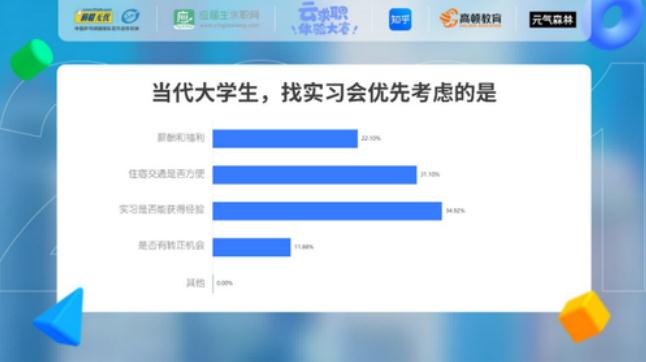 大家在尋找實(shí)習(xí)的過(guò)程中,會(huì)優(yōu)先考慮的三個(gè)因素分別是實(shí)習(xí)是否能獲得經(jīng)驗(yàn)、住宿交通是否方便、薪酬和福利。