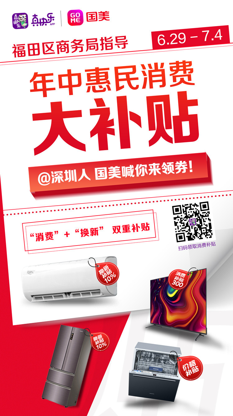 據(jù)悉,為獻(xiàn)禮建黨100周年,在深圳市福田區(qū)商務(wù)局的指導(dǎo)下,深圳國美和“真快樂”APP誠意滿滿的推出了“年中惠民消費(fèi)大補(bǔ)貼”活動,國美這次“年中消費(fèi)大補(bǔ)貼”將從6月21日起一直延續(xù)到7月4日,4500萬補(bǔ)貼發(fā)放,助力深圳地區(qū)消費(fèi)者升級品質(zhì)生活。而且所有活動商品原有低價(jià)基礎(chǔ)上進(jìn)行補(bǔ)貼直降,還有超多驚喜好價(jià)等你來搶,此波羊毛絕對放心薅,一起來看看吧!