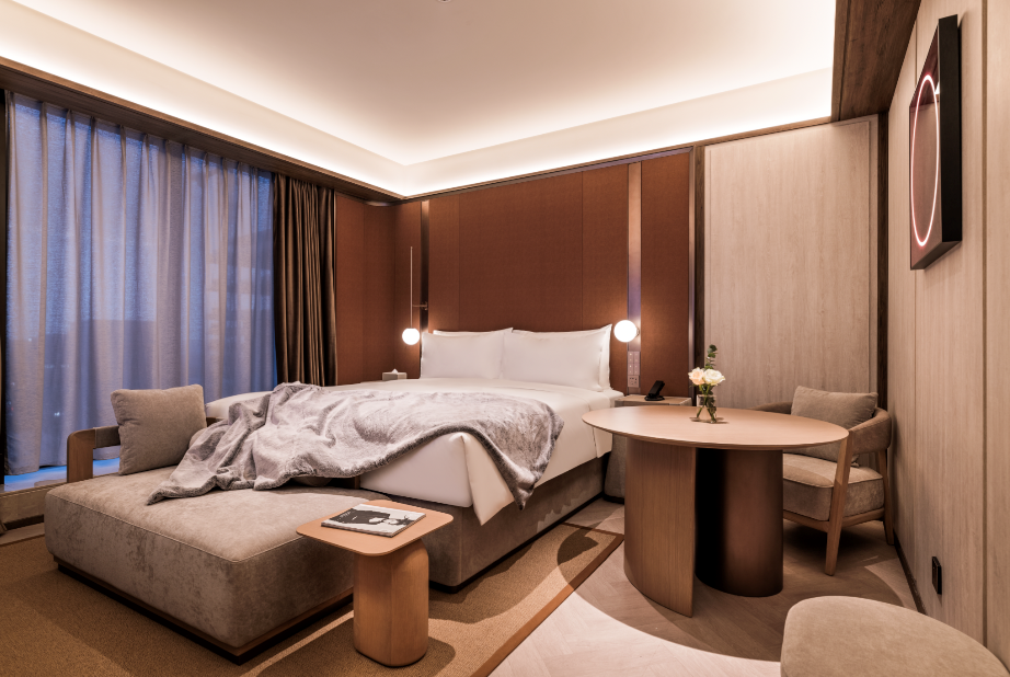 在公區(qū)設計上,“新水晶”回歸本質與純粹,采用胡桃木、古銅、玻璃元素,打造更具質感更具高級感的空間氛圍。大堂配備的威士忌酒廊,優(yōu)雅中又帶著商務,整體提升水晶品質特質??头績炔浚彤嫲愕馁|感與流暢典雅的線條相結合,干凈而明亮,純粹的質地、靜謐的空間,展現了水晶的格調和品味。