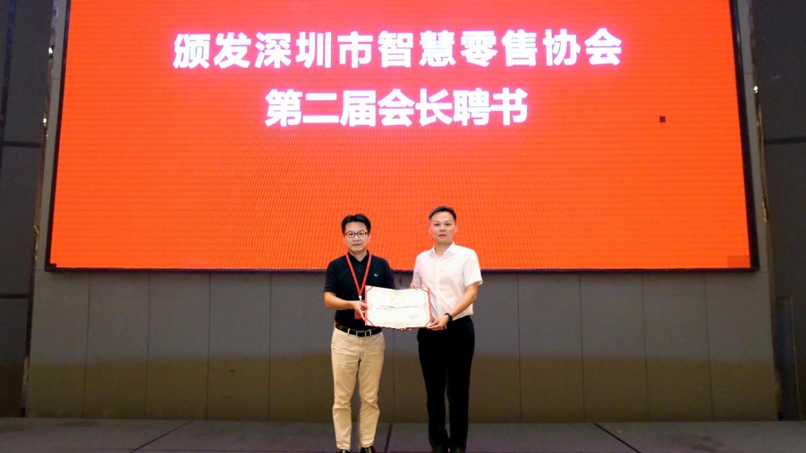 同期,深圳市智慧零售協會,在此舉行四年一度的換屆選舉大會。經過無記名差額投票選舉,天虹數科商業(yè)股份有限公司董事長高書林連任深圳市智慧零售協會會長,由深圳市對口支援新疆工作前方指揮部副總指揮、深圳市商務局副局長管耀華為其頒發(fā)聘書。