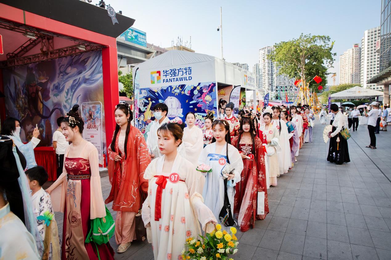 為了提升夜間經(jīng)濟業(yè)態(tài),節(jié)展期間電玩節(jié)組委會在每天的16時至21時共計舉辦了三十余項不同類型的賽事活動,包括COSPLAY大賽、紅白歌會、國風(fēng)國潮大賽、“第四屆王者榮耀全國大賽城市賽”“英雄聯(lián)盟 ·金鏟鏟之戰(zhàn)線下體驗派對”、主街游戲競技場、COSPLAY巡游、漢服巡游、國風(fēng)走秀等。同時還邀請知名COSPLAY團、人氣COSER熊祁、唯安、組合844樂隊、七朵家族舉辦了專場見面會和簽售會,吸引了大量觀眾駐足圍觀,臺上臺下熱情互動,掀起陣陣活動高潮,以沉浸式的體驗帶動新消費,打造深圳夜間消費新地標(biāo)。