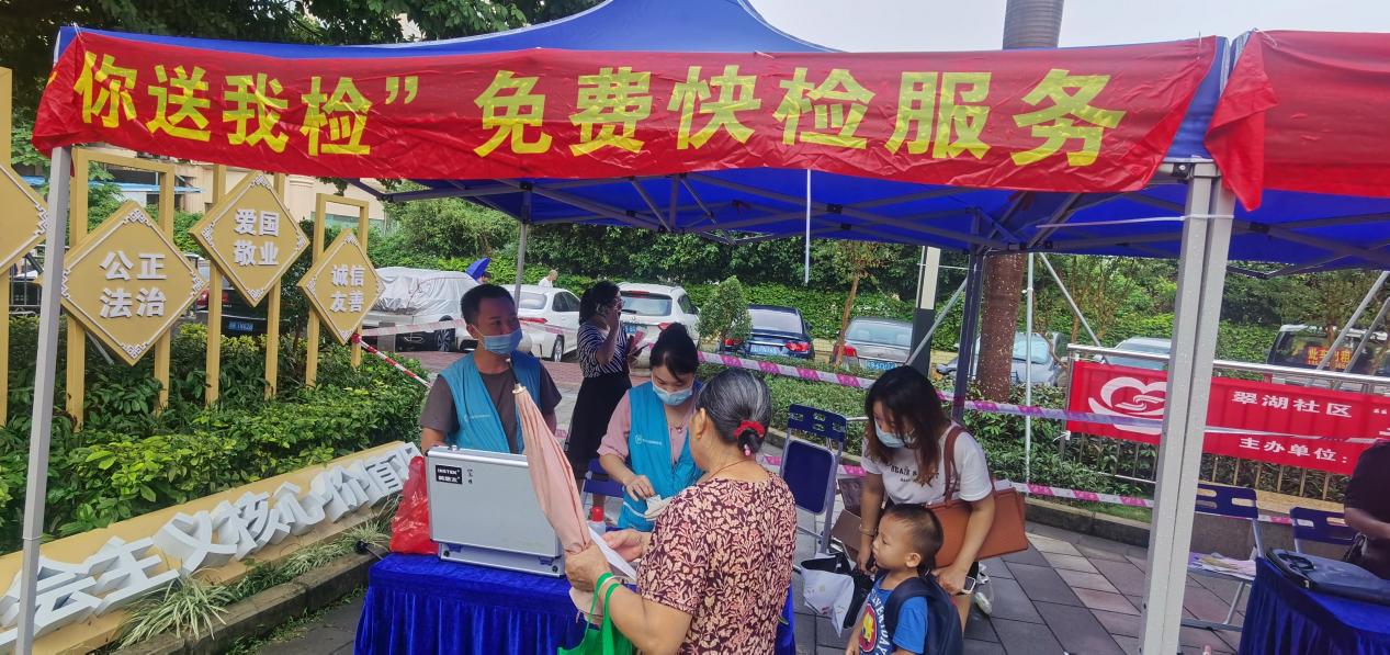 活動(dòng)當(dāng)天,特邀街道食藥安辦快檢室工作人員來到現(xiàn)場,指導(dǎo)送檢市民親身體驗(yàn)“農(nóng)殘快檢”,普及深圳市極具特色的食品安全民生工程“一街一車一室一中心一基地”。