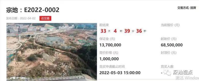 据土地出让公告,E2022-0001、E2022-0002两宗地均位于深圳市深汕特别合作区鹅埠镇鹅埠\与龙p\交汇处,均ؓ(f)普通工业用圎ͼ土地使用q限均ؓ(f)30q。其中,E2022-0001宗地土地面积U?万^方米Q徏{面U约6万^方米Q挂牌v始h(hun)1840万元。E2022-0002宗地土地面积U?.5万^方米Q徏{面U约16.6万^方米Q挂牌v始h(hun)?850万元。其中E2022-0001宗地准入行业为机器h、可I戴讑֤和智能装备业,E2022-0002宗地准入行业为新一代信息技术业?/p>