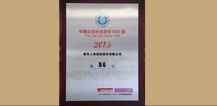 2015年4月,在由中國(guó)企業(yè)評(píng)價(jià)協(xié)會(huì)、清華大學(xué)社會(huì)科學(xué)學(xué)院聯(lián)合首次發(fā)布的“2015中國(guó)企業(yè)社會(huì)責(zé)任500強(qiáng)”榜單中,新華保險(xiǎn)從1600家候選企業(yè)中脫穎而出,入圍榜單第86位。