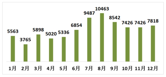 圖1:全年各月投訴總量圖(單位:宗)