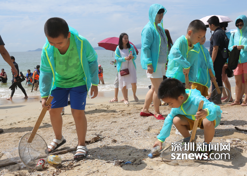 看到沙灘上的各種垃圾,孩子們用工具、手,快速地清理,還海岸線耀眼的風(fēng)景。