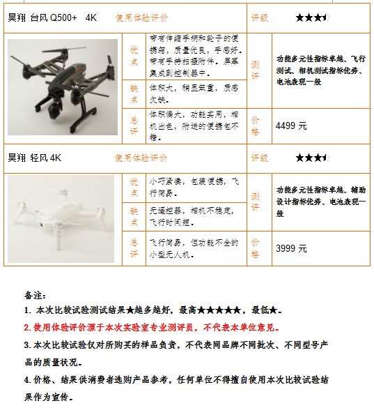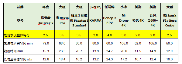 御Mavic Pro”和“精靈3標準版Phantom 3 Standard”,充電時間較短,續(xù)航時間較長,表現較好,獲評3.5分。