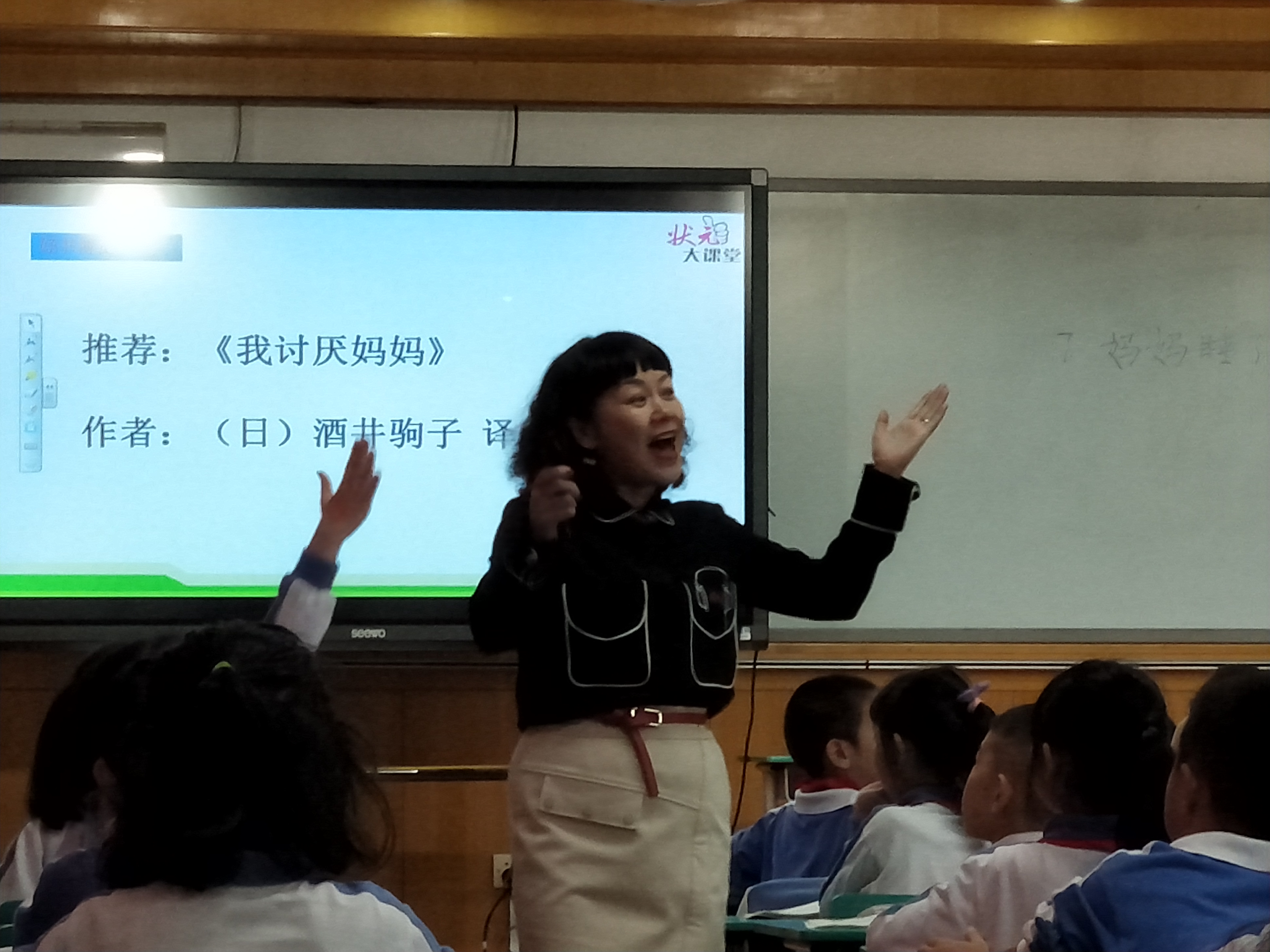 2015年,她還帶領(lǐng)孩子們?cè)谌猩傧汝?duì)建隊(duì)65周年大型慶典活動(dòng)上,展示了一節(jié)主題為“五星紅旗迎風(fēng)飄揚(yáng)”的隊(duì)會(huì)課,獲得與會(huì)的市、區(qū)領(lǐng)導(dǎo)和老師們的高度贊譽(yù)。市團(tuán)少工委大隊(duì)輔導(dǎo)員石老師看了他上的班會(huì)課,說“周老師,您帶的學(xué)生太出色了,各個(gè)都是出色的主持人,這節(jié)隊(duì)會(huì)課值得全深圳的中隊(duì)輔導(dǎo)員觀摩!”。今年廣東省教育廳教育研究員姚軼潔副主任聽了她一節(jié)隊(duì)會(huì)課,握著她的手激動(dòng)地說:“上得太好了,已經(jīng)超出了我們編寫教材的預(yù)期!”