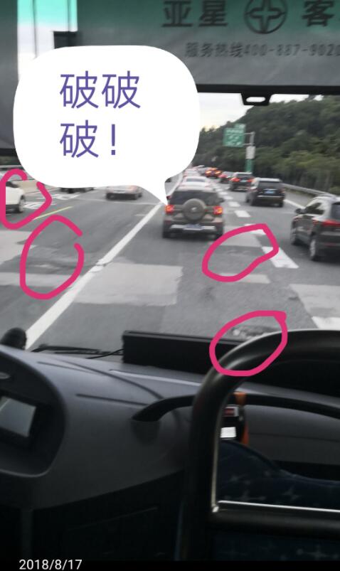 市民syh19667288于6月17日在深圳論壇發(fā)帖《梅觀高速,你的路面質(zhì)量不如我家小縣城啊》,用一組經(jīng)過(guò)標(biāo)注的照片展示了梅觀高速路多處路面破損的情況。