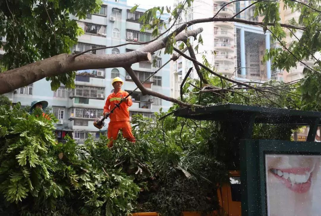這幾天,經(jīng)過環(huán)衛(wèi)工人和綠化工人的辛勤勞動,全區(qū)累計清理生活垃圾352.6噸、綠化垃圾587.4噸,清理倒伏樹木4026棵、損毀樹枝2132株。“臺風(fēng)過后樹葉、垃圾太多,這幾天特別忙,特別辛苦,沒有停過?!惫ぷ髟倜υ倮?,梁忠還是笑著說,“有這么多兄弟姐妹一起清理,看到街道慢慢變干凈,覺得再辛苦也是值得的!”