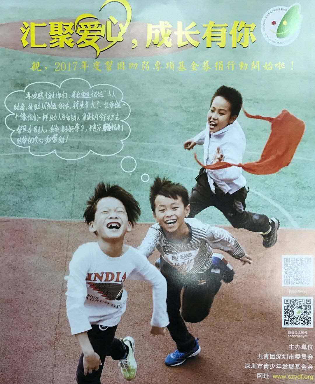 為關(guān)心關(guān)愛青少年健康成長(zhǎng),營(yíng)造樂(lè)觀、積極向上的社會(huì)氛圍,深圳農(nóng)商行發(fā)起了“匯聚愛心成長(zhǎng)有你”的公益愛心活動(dòng),號(hào)召全行向2017年度深圳市青少年幫困助弱專項(xiàng)基金進(jìn)行愛心捐助?;顒?dòng)得到了全行上下的大力支持,全行共募集善款人民幣221156.66元。青基會(huì)對(duì)深圳農(nóng)商行員工的善舉表示了深深的謝意,并期待與深圳農(nóng)商行開展更廣泛、更深入的公益活動(dòng)合作。