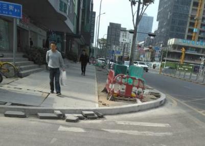 經(jīng)記者了解,從深圳實(shí)施道路設(shè)施品質(zhì)提升工程以來,有不少市民反映過施工中存在的一些問題。比如:去年1116日,市民在論壇反映,田貝一路到三路,貝麗南路到翠竹路人行道全部敲掉。提升改造可以理解,全部路一次性毀掉行人該走哪里?如果很快完工就罷了,明顯還要一段時間才能完工。還有去年1223日,市民反映,羅湖大面積改造人行道,馬路牙子換成又厚又高的大塊地磚,并且拓寬了人行道,擠占車行道,特別在狹窄道路或路口轉(zhuǎn)彎處,影響車輛轉(zhuǎn)彎,存在安全隱患。