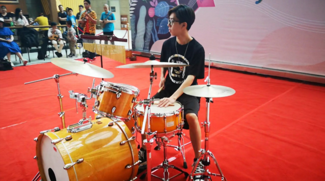畢業(yè)于深圳大學(xué)金鐘音樂學(xué)院的主唱周鈺城帶來兩首尤克里里樂隊歌曲, Jason Mraz 的經(jīng)典曲目《 I’ m Yours 》和英國當(dāng)紅歌星 E d sheeran 的 《 Thinking out Loud 》,周鈺城富有磁性的嗓音,在深圳夏威夷小吉他協(xié)會理事謝佳宜的尤克里里琴聲以及同樣畢業(yè)于深圳大學(xué)金鐘音樂學(xué)院的鼓手黃曉輝的鼓聲伴奏中,美妙的融合在一起。