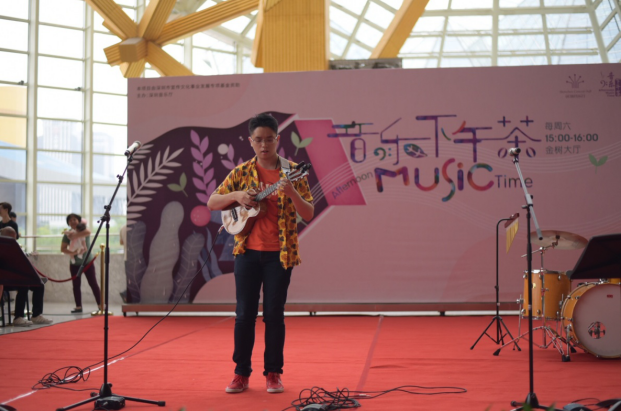 深圳市夏威夷小吉他協(xié)會副會長許振立帶來了三首各具特色的曲目,經(jīng)典游戲配樂《超級瑪麗》,《 On the Sunny Side of the Street 》 和原創(chuàng)歌曲 《Funky boy》, 音樂會在許振立的Funky風(fēng)格的尤克里里琴聲中完美的落下了帷幕 。