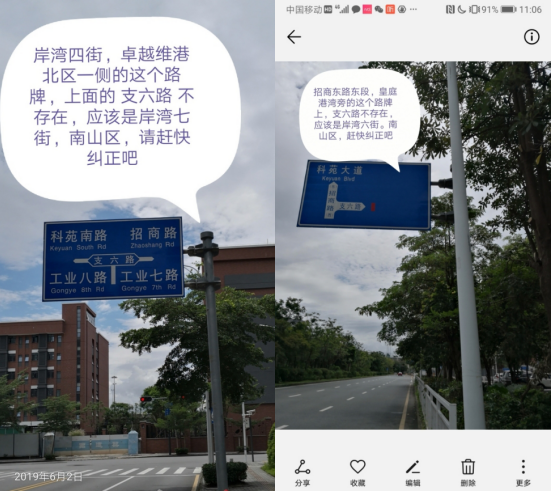 “南山區(qū)城管局當(dāng)時(shí)回應(yīng)道:‘因臺(tái)風(fēng)砍倒的樹木將會(huì)統(tǒng)一采購,盡快予以補(bǔ)種;有問題的路牌將于七月底前更換。會(huì)盡快聯(lián)系南山稅務(wù)部門,修復(fù)有問題的井蓋’”,該市民卻對(duì)管理部門的工作效率提出質(zhì)疑:“然而現(xiàn)在距離投訴已經(jīng)兩個(gè)月了,問題依然存在。工作效率如此之低?”